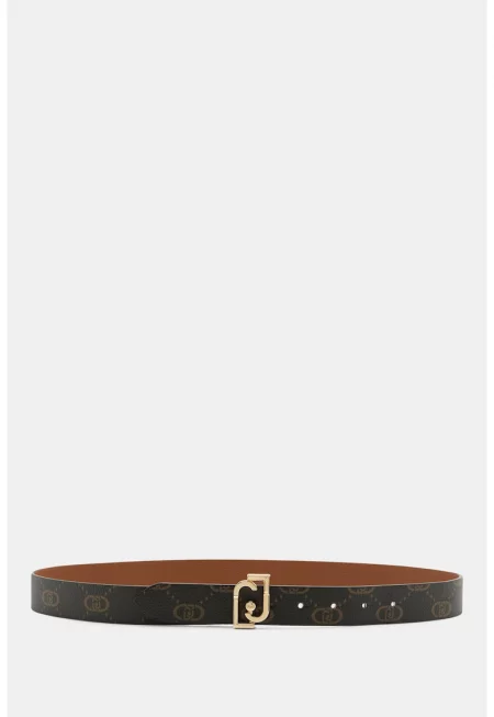 Двулицев колан с лого - Тъмнокафяв