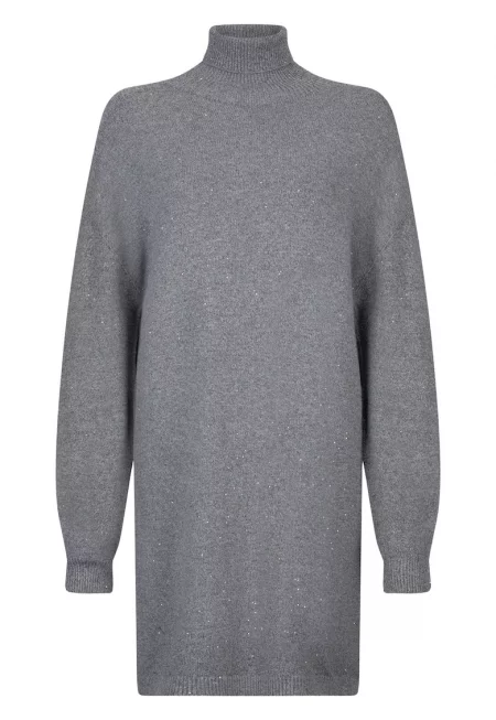 Рокля-поло с декоративни камъни - Сив