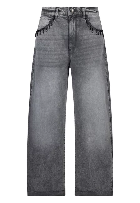 Разкроени дънки с апликации - Сив меланж