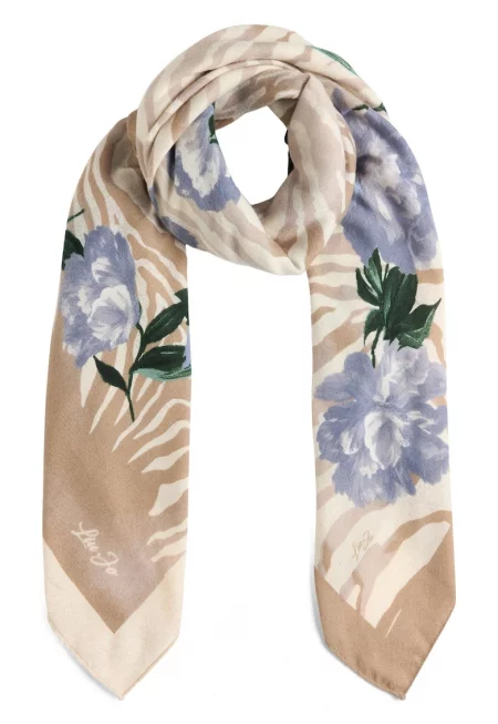 Флорален шал - Син/Светло бежово