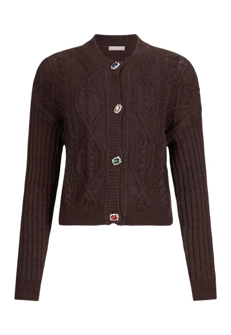 Плетена жилетка с вълна - Тъмнокафяв