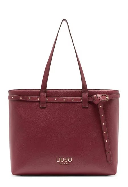 Шопинг чанта с метални нитове - Коняк кафяв