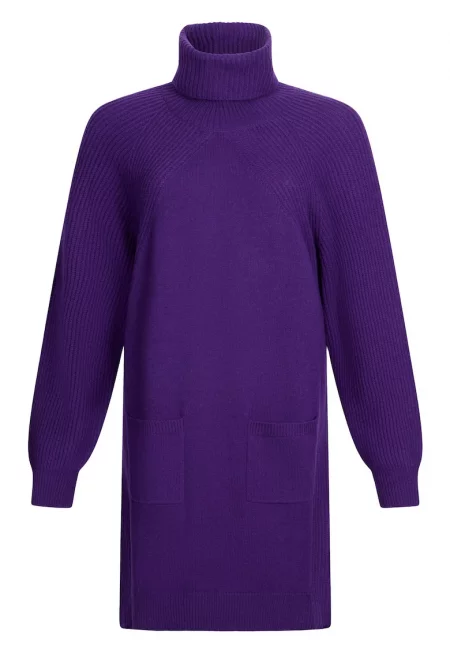 Вълнена рокля с поло - Виолетов