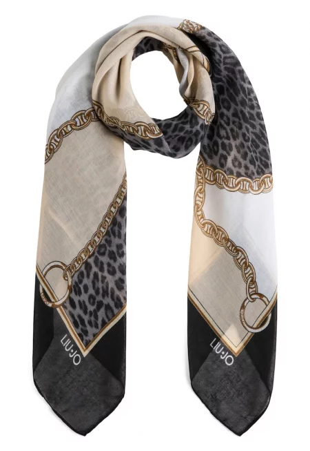 Ефирен шал с принт - Черен/Мръснобял