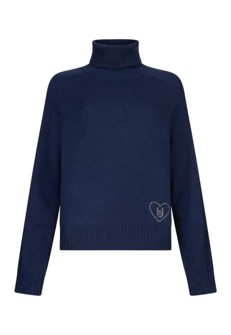 Поло с вълна и кашмир - Индигово синьо