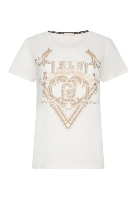 Памучна тениска с принт - Бял