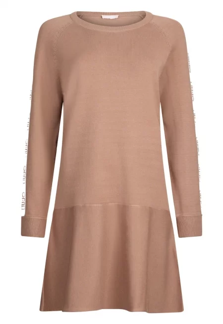 Къса рокля с дълги ръкави - Бежов