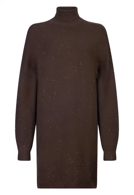 Рокля-поло с декоративни камъни - Тъмнокафяв