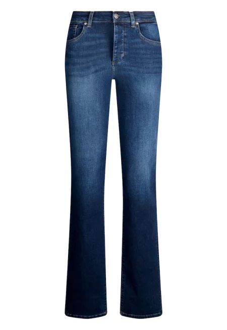 Разкроени дънки с миди талия - Син меланж