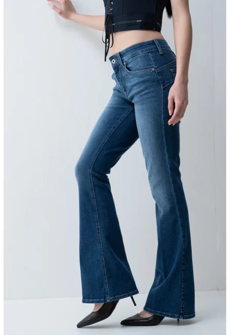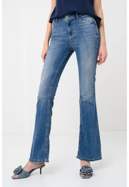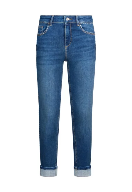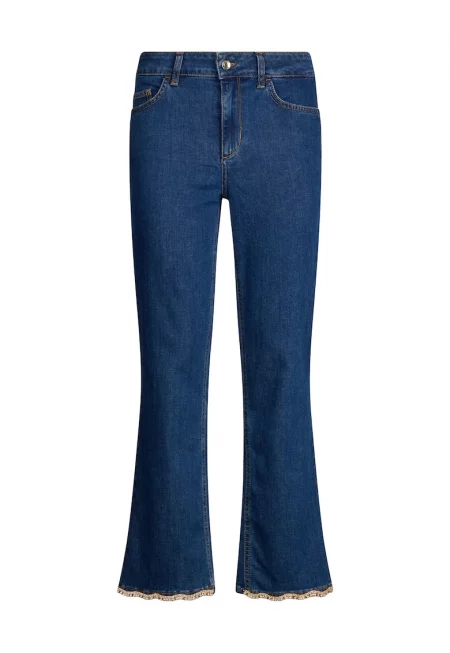 Леко разкроени дънки с декоративни камъни - Син