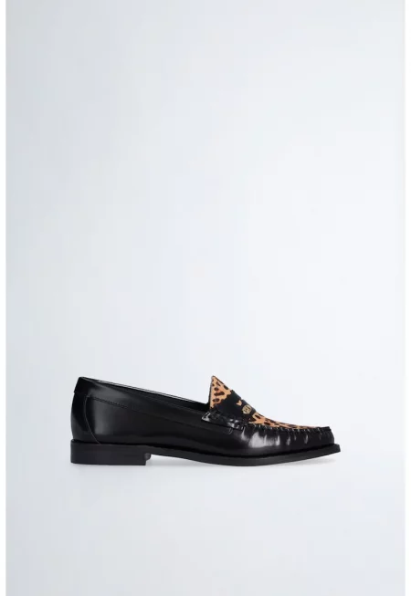 Кожени мокасини с животинска шарка - Черен/Кафяв