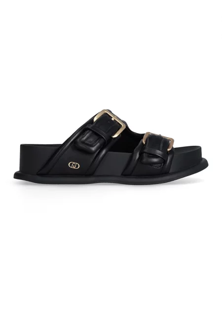 Скосени сандали от еко кожа - Черен