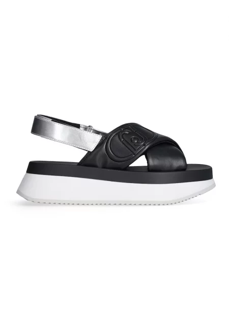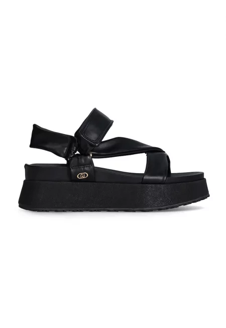 Сандали от еко кожа с платформа - Черен