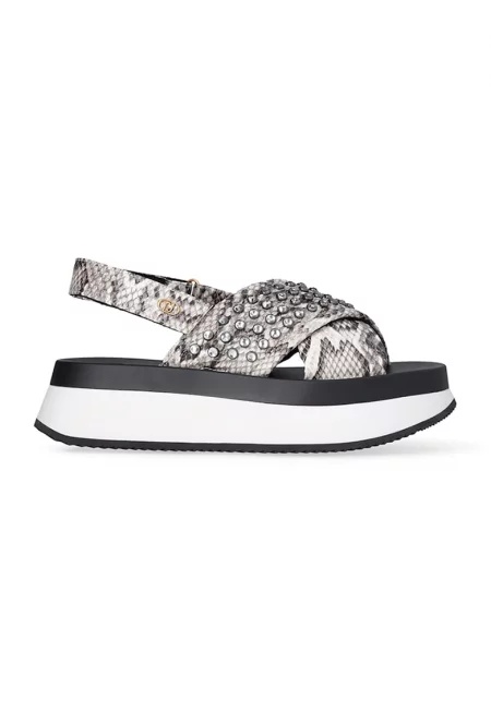 Сандали с платформа и принт - Сиво-кафяв