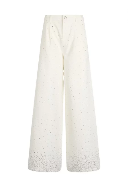 Дънки с широк крачол и декоративни камъни - Бял