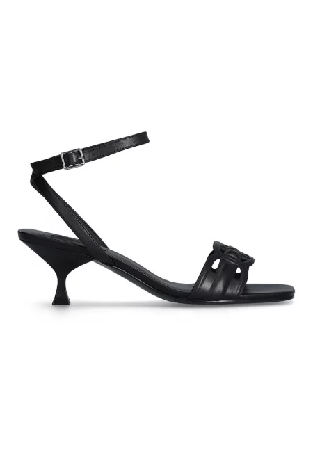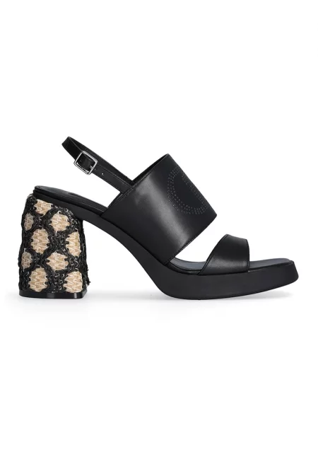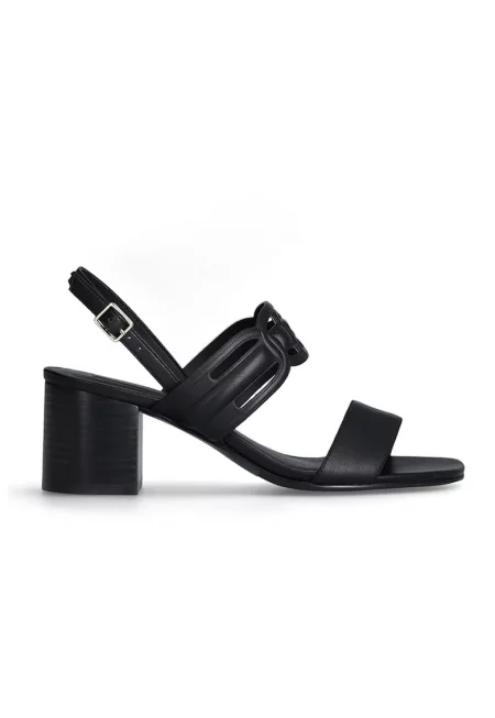Кожени сандали с масивен ток - Черен