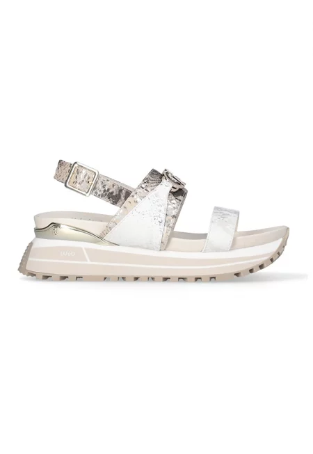 Скосени сандали от еко кожа - Слонова кост/Сребрист