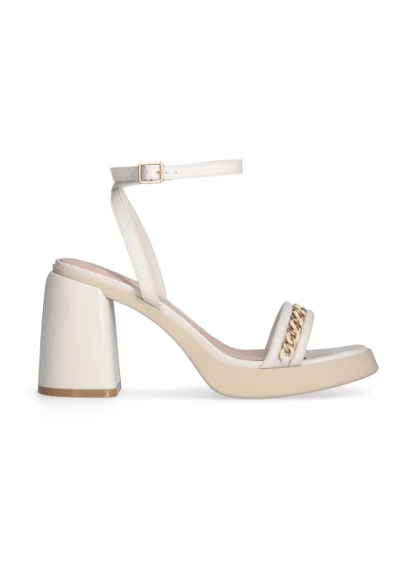 Кожени сандали с масивен ток - Слонова кост