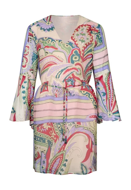 Къса рокля с коприна и десен - Розово