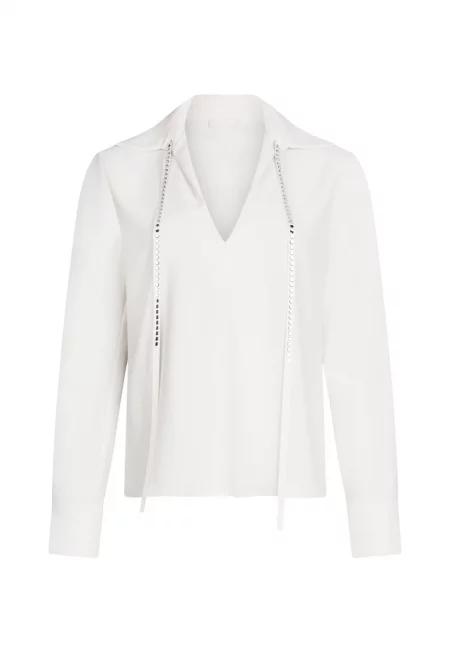 Шпиц блуза с декоративни камъни - Светло бежово