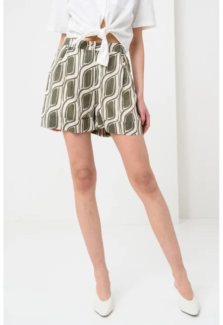 Къс панталон с широк крачол - Зелен/Светло бежово