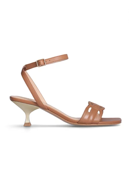 Кожени сандали с каишка на глезена - Карамел