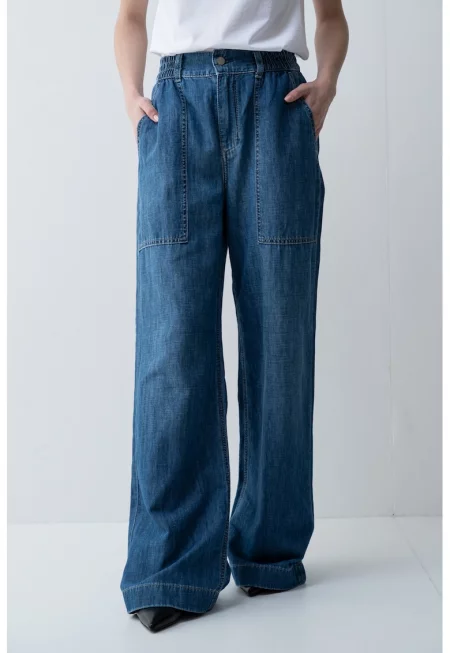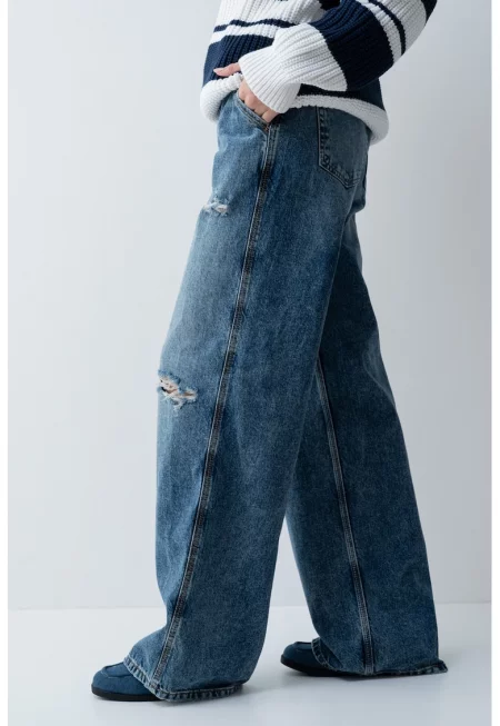 Дънки с паднало дъно и широк крачол - Син