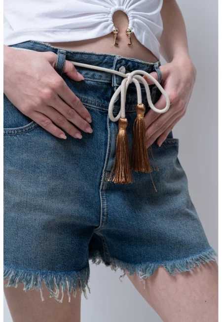 Къси дънки с връзка - Бежов/Син