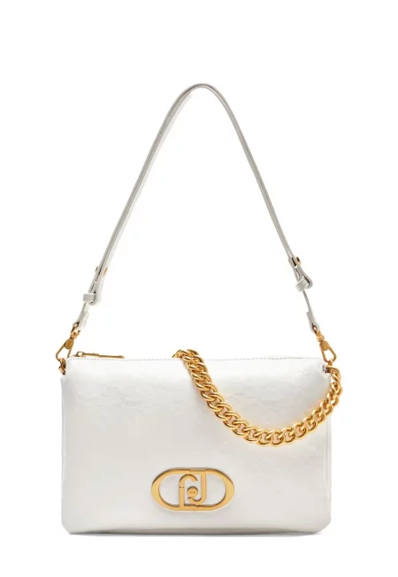 Чанта за рамо от еко кожа с декоративна верижка - Бял