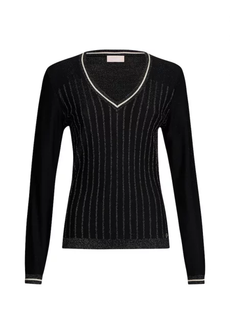 Слим пуловер с шпиц - Бял/Черен