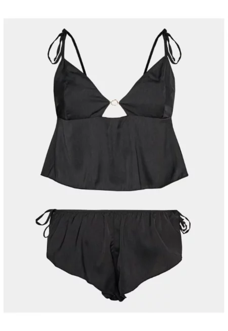 Дамска пижама - 302999491 - Полиестер - Черен - Черен