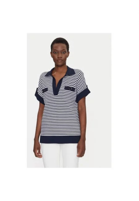 Дамска поло риза 58672 CAIO - вискоза/полиамид - бяло/тъмносиньо