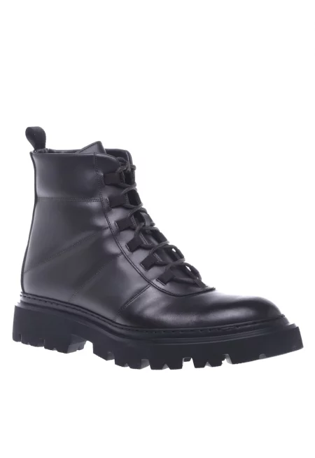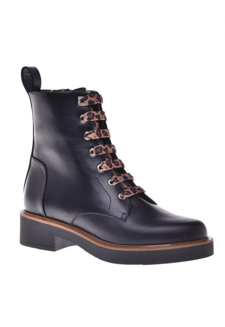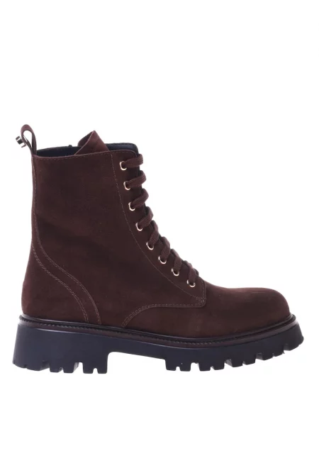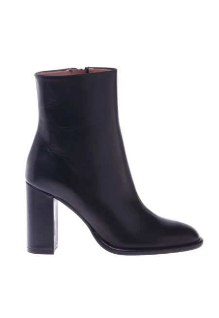 Боти тип кубинки с кожа - еко кожа и масивен ток