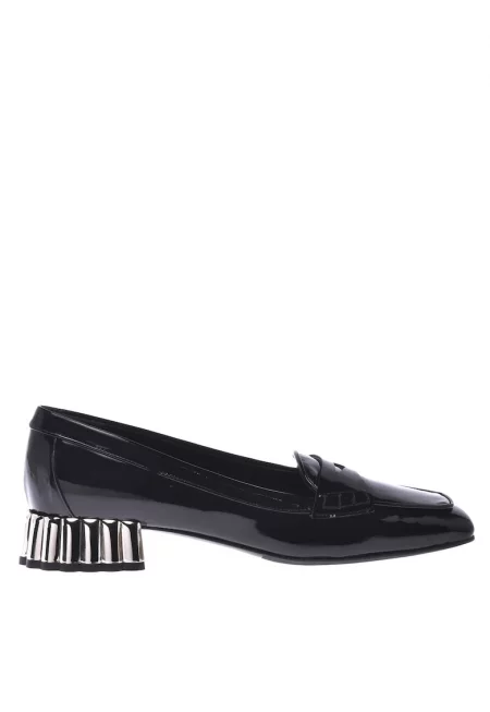 Обувки от лачена кожа с ток и квадратен връх