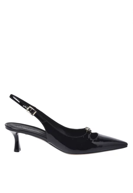 Лачени кожени обувки с гола пета и декоративни камъни