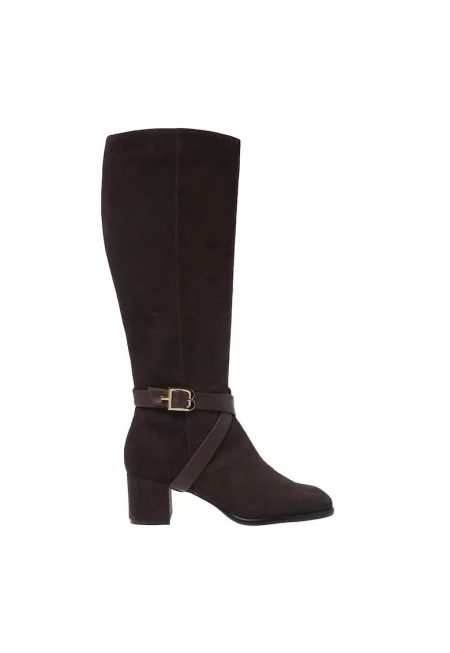 Велурени ботуши с декоративна кожена тока