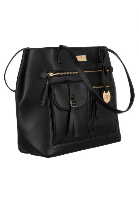 Дамска чанта - тип тоут - черна - 1 отделение - 3 джоба
