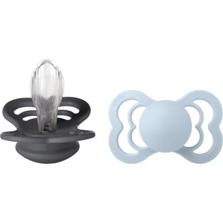 BIBS Supreme Silicone Size 2: 6+ months биберон Iron / BabyBlue 2 бр.