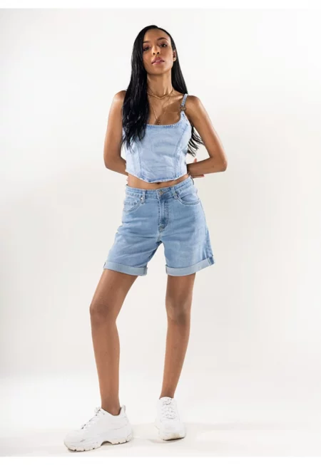 Светлосини къси дънки с усукани краища P208-6A M7 17338