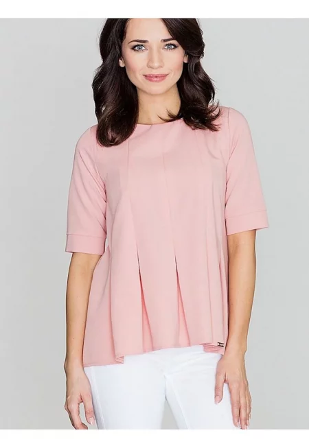 Дамска блуза - Ленитиф - розово - полиестер - къс ръкав - обло деколте