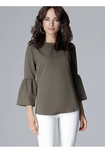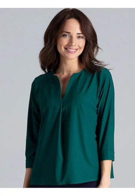 Дамска блуза - Ленитиф - с 3/4 ръкав - волани - зелена - полиестер