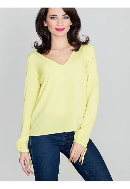 Дамска блуза - Ленитиф - жълта - без ръкави - вратовръзка - полиестер