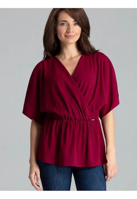 Дамска блуза Полиестер/Еластан/Вискоза - Къс ръкав - Бордо