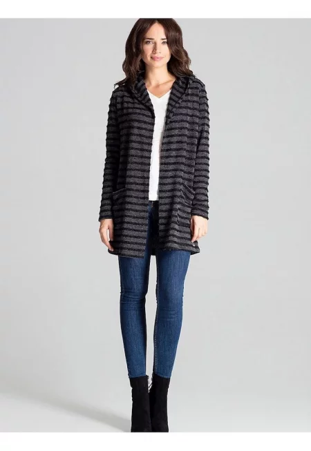 Дамски пуловер - ленитиф - жилетка - черен