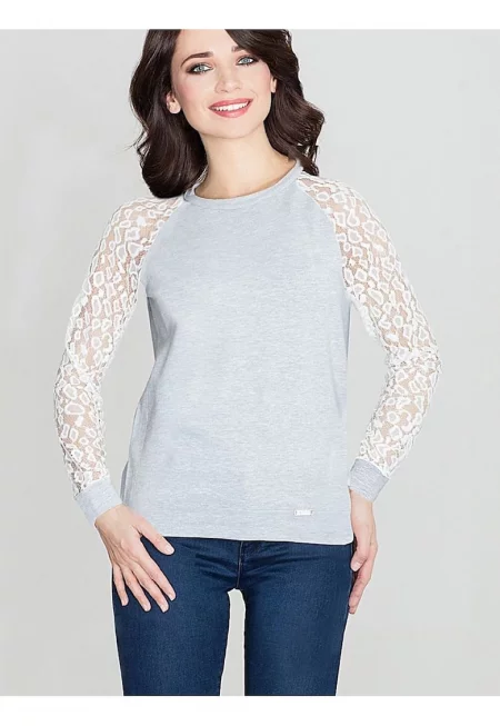 Дамска блуза - Ленитиф - дантелени ръкави - сива - памук