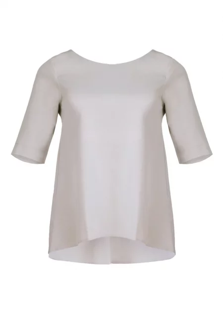 Дамска блуза бежова - с удължен гръб - къс ръкав - еластична материя