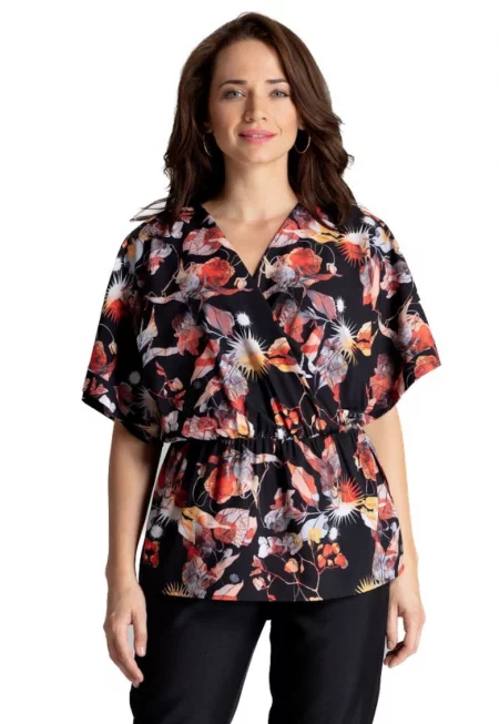 Дамска блуза многоцветна - кимоно ръкави - ластик на талията