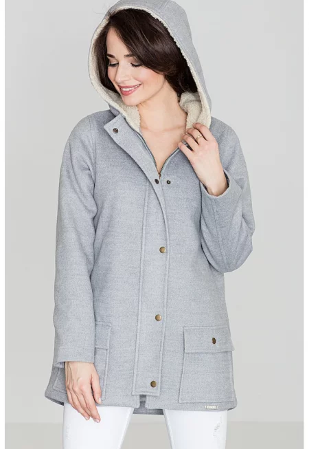 Дамско яке K306 - сиво - полиестер - дълги ръкави - семпъл дизайн -