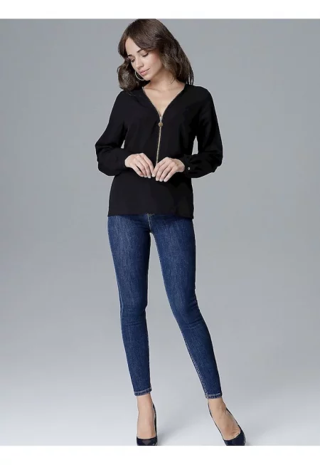 Дамска блуза - Ленитиф - с цип - черна - ЛИКРА - полиестер