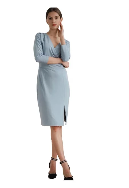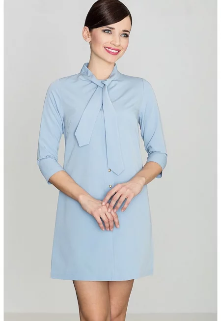 Дневна рокля 5902194382038 - Ленитиф - вискоза/полиестер - 3/4 ръкави - синя -